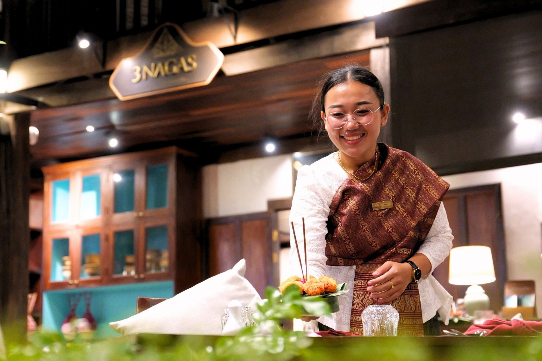 Join us for this enchanting celebration, where heritage, light, and flavor come together at 3 Nagas Restaurant. While enjoying your dinner, watch the Light Boat Parade pass by, turning the Mekong River into a shimmering spectacle of floating lanterns.